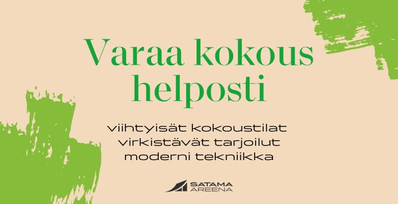 Satama Areenalta löytyy monipuolisia tiloja kokousten järjestämiseen. Kokoustilamme tarjoavat laadukkaat puitteet pienille ja suurille kokouksille. Viihtyisät kokoustilat, virkistävät tarjoilut ja modernin tekniikan sisältävät kokouspaketit ovat helposti varattavissa suoraan verkkosivuiltamme 2–200 henkilölle.